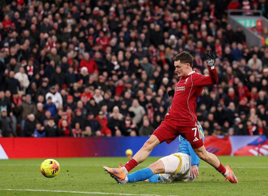 随着主裁判一声哨响,利物浦就在主场大举压上围攻狼队,第8分钟维尔茨右路带球推进,随后横敲给了中路跟进的麦卡利斯特,可惜后者没有拿到皮球,2分钟之后,维尔茨中场送出一脚妙传,埃基蒂克禁区内兜射远角,可惜运气不佳被门柱挡出,第28分钟麦卡利斯特的劲射再次击中门框。