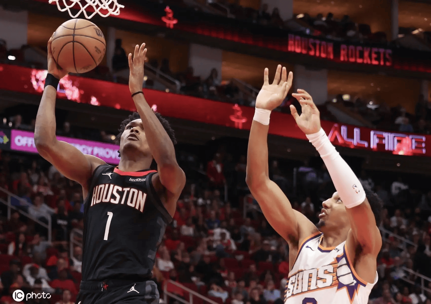 第二节,比赛进入胶着状态,双方竞争激烈,交替得分。虽然火箭多次试图改变局面,但太阳始终保持微弱优势,第二节结束时,太阳以60-54领先火箭。两队在这一节的对抗中,防守逐渐加强,令得分变得更加困难。