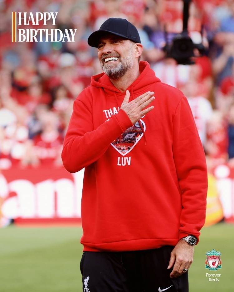 功勋主帅!利物浦祝克洛普58岁生日快乐,执教红军9年斩获8冠 admin 2025年06月16日 17:30 102 0 直播吧6月16日讯 今天是克洛普的58岁生日,老东家利物浦为他送上祝福。利物浦官方社媒晒出为克洛普制作的生日海报,配文:“生日快乐,尤尔根!”克洛普曾担任美因茨、多特、利物浦主帅,2015年到2024年执教利物浦期间带队赢得1次英超冠军、1次足总杯冠军、2次联赛杯冠军、1次社区盾杯冠军、1次欧冠冠军、1次欧超杯冠军、1次世俱杯冠军。 标签: #克洛普 #利物浦 #欧冠 #功勋 #欧冠冠军 #生日 #足总杯 #社区盾杯 #尤尔根 #冠军 #祝克洛普