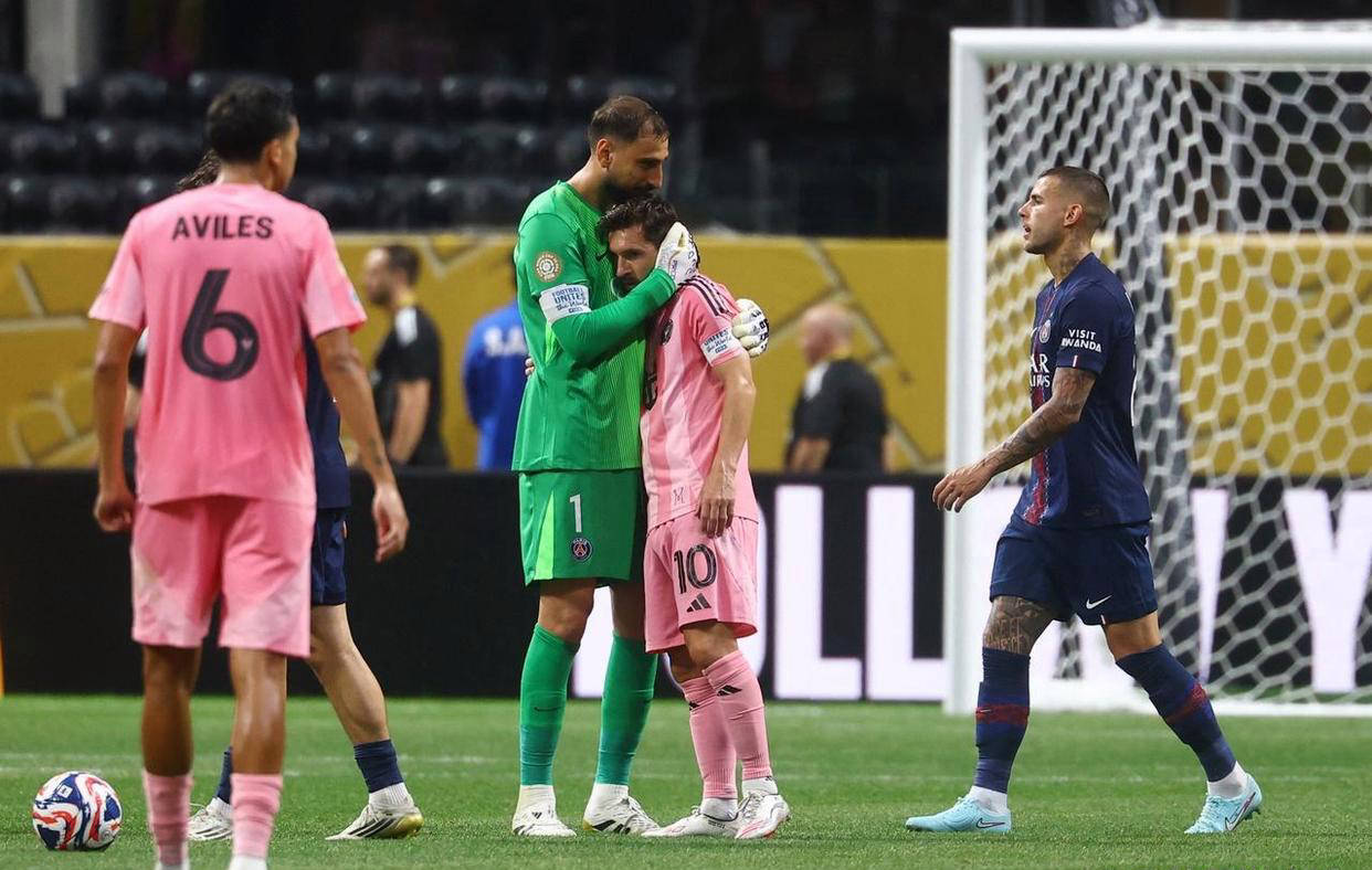 尽管迈阿密国际在小组赛中表现出色,并且有梅西的加盟让人寄予厚望,但比赛开始仅仅五分钟,内维斯便为大巴黎首开纪录,这也宣告了迈阿密黑马之路的结束。上半场结束时,大巴黎已经攻入四球,队友们的低迷表现使得梅西愁眉苦脸,失落之情可想而知。